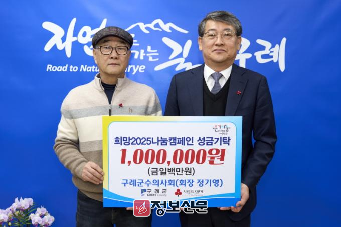 김순호 구례군수는 “연말연시 이웃을 위한 따뜻한 나눔에 동참해주신 구례군수의사회에 깊이 감사드린다”며 “기탁해주신 성금은 도움이 필요한 이웃들에게 소중히 전달해 따뜻한 겨울을 보낼 수 있도록 하겠다”고 전했다.