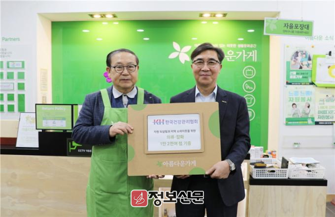 ![]() KH한국건강관리협회, ‘2025 아름다운하루 특별전’ 성료(아름다운가게 장윤경 상임이사(좌측), 한국건강관리협회 강위중 사무총장(우측) |