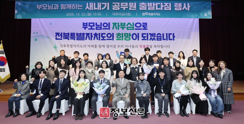 전북자치도는 22일 오후 도청 대회의실에서 새내기 공무원과 부모, 간부 공무원 등 200여 명이 참석한 가운데 ‘새내기 공무원 출발 다짐 행사’를 열고, 공직자의 길에 들어선 이들의 새로운 시작을 응원했다.