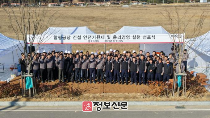 노사가 함께하는 행사를 통해 함평공장 건설공사의 무사고·무재해를 기원하고 안전의식을 제고하며 안전 최우선 원칙에 대한 공동 의지를 다졌다.