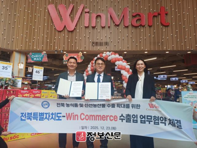 베트남 최대 유통 리테일 기업인 윈커머스(Win Commerce) 본사를 방문해 전북 농식품 전반의 판로 확대를 위한 협약도 체결했다. 현지에서 3,600여 개의 윈마트(WinMart)와 윈마트+(WinMart+) 매장을 운영 중인 윈커머스는 전북의 경쟁력 있는 신선농산물과 가공식품을 전국 유통망에 입점시키고, 전북도는 고품질 제품의 안정적 공급과 현지 마케팅을 지원하기로 했다.