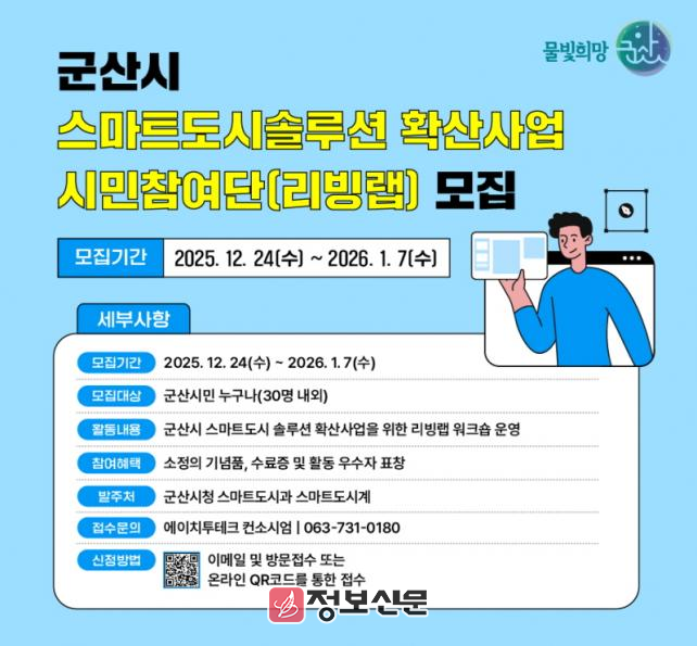 ![]() 군산시, 스마트도시 솔루션 확산사업 리빙랩 시민참여단 모집 |