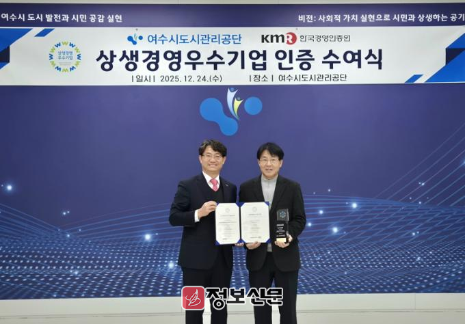 여수시도시관리공단 이사장은 “이번 상생경영 우수기업 재인증은 공단이 추진해온 지역사회 상생 노력과 ESG 경영 실천이 다시 한 번 인정받은 결과”라며, “앞으로도 지속 가능한 상생경영을 실천해 시민이 체감할 수 있는 사회적 가치를 창출해 나가겠다”고 말했다.