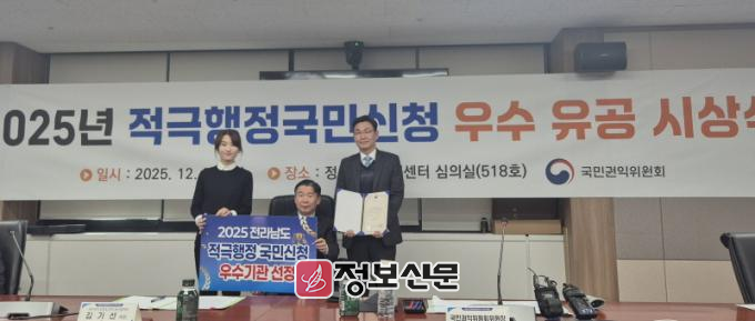 ![]() 전라남도, 2025 적극행정 국민신청 처리 우수기관 선정 |