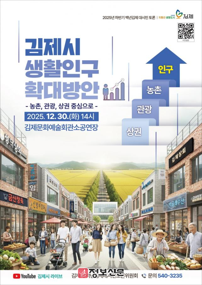 ![]() 김제시, 생활인구 확대방안을 위한 백년김제 대시민 토론회 개최 |