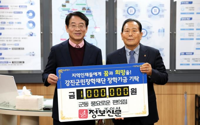 ![]() 강진군, 지역 인재 육성 장학금 기탁 행렬 줄이어(군동풍료로운편의점 대표 조인석) |