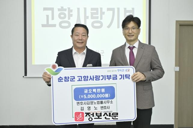 ![]() 김영노 변호사, 순창군에 고향사랑기부금 500만원 기탁 |