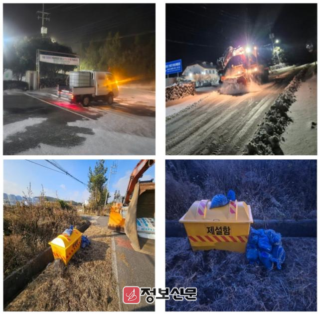 이번에 설치된 제설함은 모두 6대로 결빙 취약지점에 배치됐다. 제설함에는 모래와 염화칼슘, 모삽과 눈삽, 낫 등이 함께 비치돼 있어 현장 근로자와 운전자들이 긴급 상황에서 즉시 활용할 수 있도록 했다.
