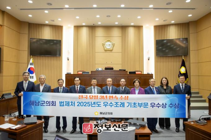 ![]() 해남군의회, 법제처 주관 우수 자치입법 활동 지방정부 선정 전국유일 3년 연속 수상 |
