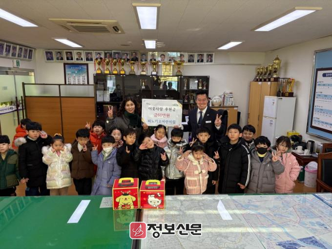 사진설명: 피노키오어린이집은 지난 26일 원아와 학부모가 함께 참여한 나눔장터 수익금 60만원을 덕연동행정복지센터에 기부했다
