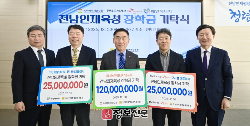 범희승 전남인재평생교육진흥원장은 “전남의 미래 신재생 에너지 산업을 이끌 인재를 키우는데 동참해주셔서 감사드린다”며 “장학금은 인재육성과 지역 상생의 선순환으로 이어질 수 있도록 소중히 활용하겠다”고 말했다.
