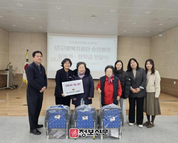 ![]() 근로복지공단 순천병원, 왕조1동에 실버카·장학금 기탁 |