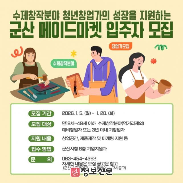 ![]() 군산시, 2026년 군산메이드마켓(수제창작플랫폼) 입주자 모집 |