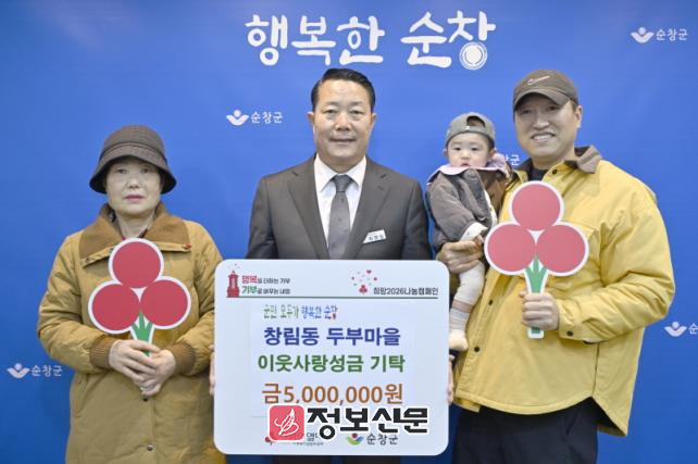 최영일 순창군수는“어려운 이웃을 위해 큰 금액을 선뜻 기부해 주신 창림동 두부마을 김평순, 김상욱 대표님께 깊이 감사 드린다”며 “이번 기부가 지역사회에 희망이 되고, 이 온정이 소중히 전달 될수 있도록 하겠다”고 전했다.