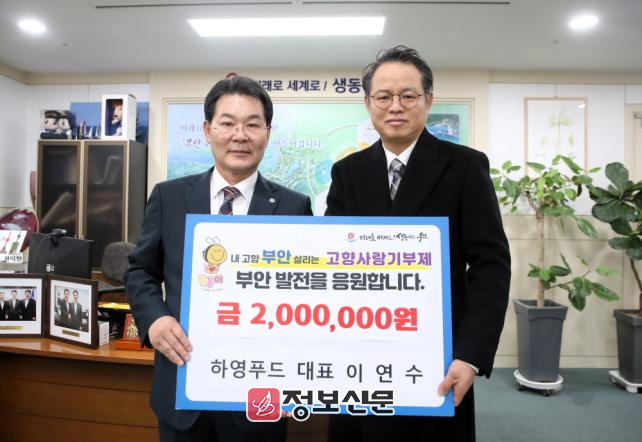![]() 이연수 하영푸드 대표, 부안군 고향사랑기부금 200만원 기탁 |