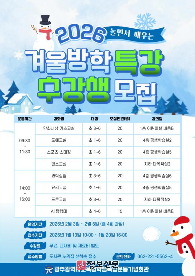 ![]() 광주학생독립운동기념회관, 초등학생 겨울방학특강 운영 |