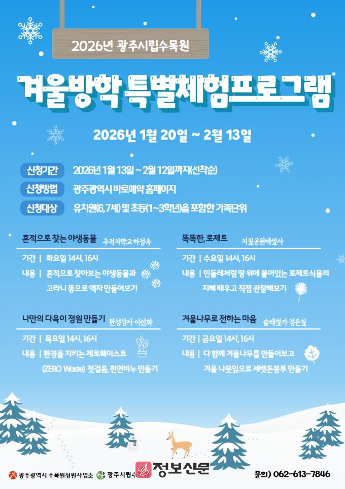 ![]() 광주시립수목원, 겨울방학 체험프로그램 운영 |