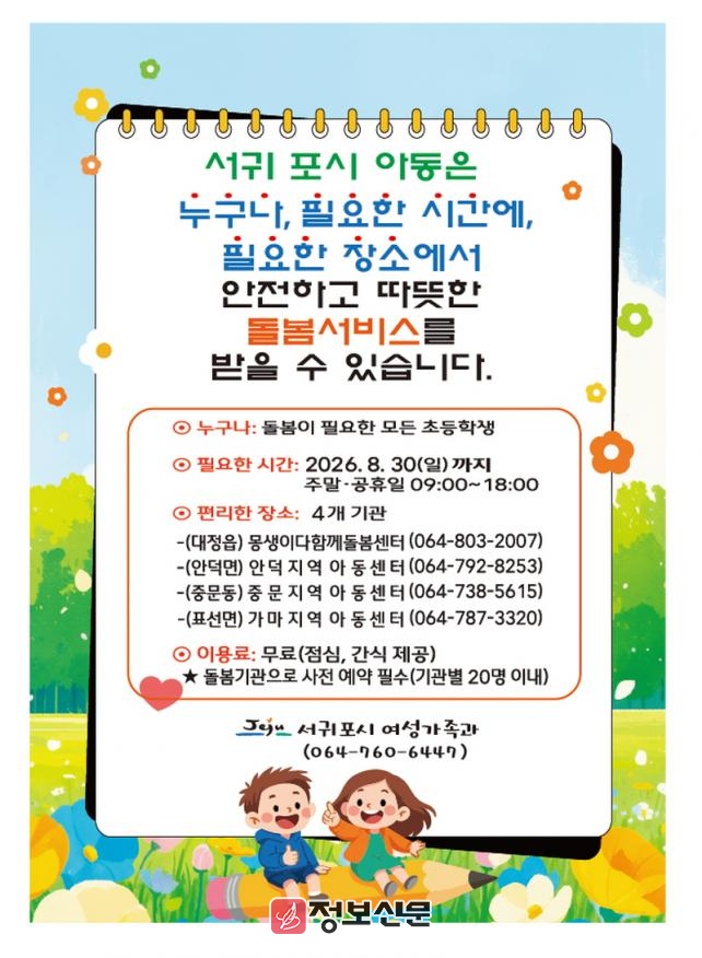 ![]() 서귀포시, 초등대상 주말·공휴일 틈새돌봄 연장운영으로 돌봄공백 해소 |