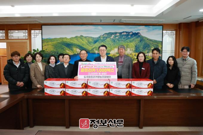 양보남 통합돌봄과장은 ”도곡파프리카영동조합법인의 기부는 지역사회에 큰 힘이 되고 있다”라며, “특히 겨울철 어려운 이웃들에게 따뜻한 위로가 될 것”이라고 감사의 뜻을 전했다.