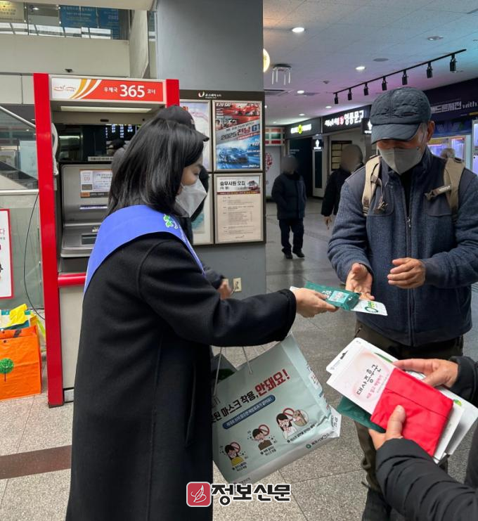 이번 캠페인은 오전에는 목포종합버스터미널에서, 오후에는 목포역에서 진행됐으며, 유동 인구가 많은 장소를 중심으로 한랭질환 예방을 위한 홍보 활동이 이뤄졌다. 캠페인 현장에서는 ▲외출 시 목도리·모자·마스크 착용 등 보온 강화 ▲한파 시 야외활동 자제 ▲한랭질환 초기 증상과 대처 방법 등을 안내하며 시민들의 주의를 당부했다.