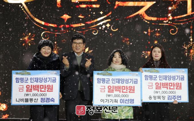 폐막식에서는 나비축제 경연대회 수상자 ‘달뜬’과 브라스밴드의 공연이 펼쳐졌고, 축제 참여 업체인 용정목장·이가기획·나비뜰동산은 함평군 인재양성기금에 100만 원을 각각 전달하여 온정을 전했다.