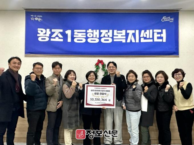 ![]() 순천시 왕조1동 트리마제 1단지 주민들, 이웃돕기 성금 1,055만원 기부 |