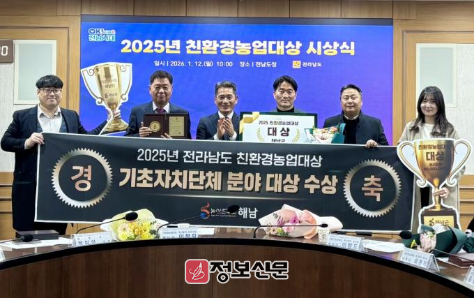![]() 해남군, 2025년 전라남도 친환경농업 대상 수상 |