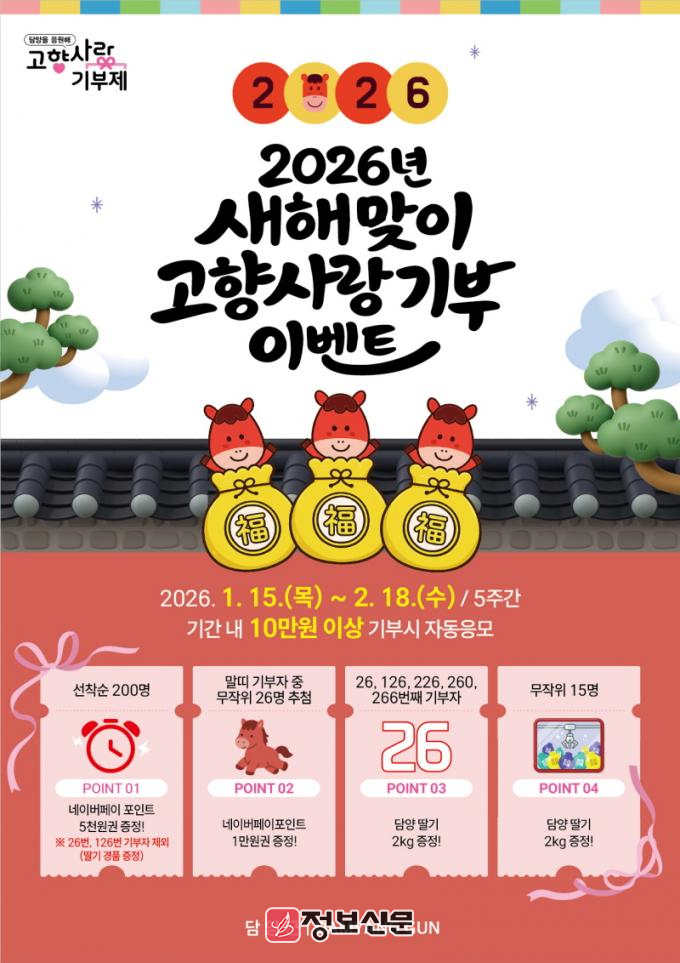![]() 담양군, 2026년 ‘붉은 말의 해’ 맞아 고향사랑기부 이벤트 추진 |