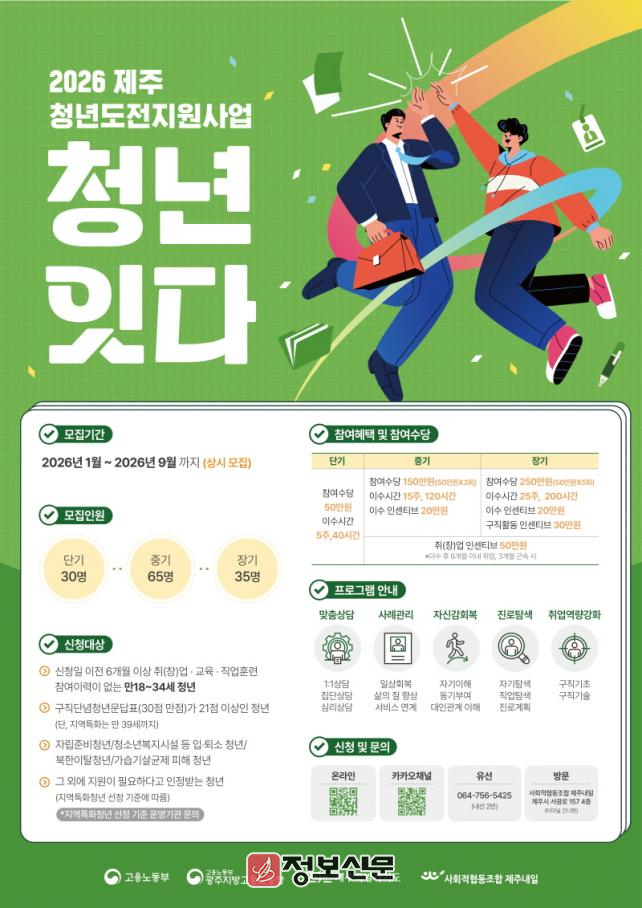 ![]() 제주특별자치도, ‘2026년 청년도전지원사업’ 추진 |