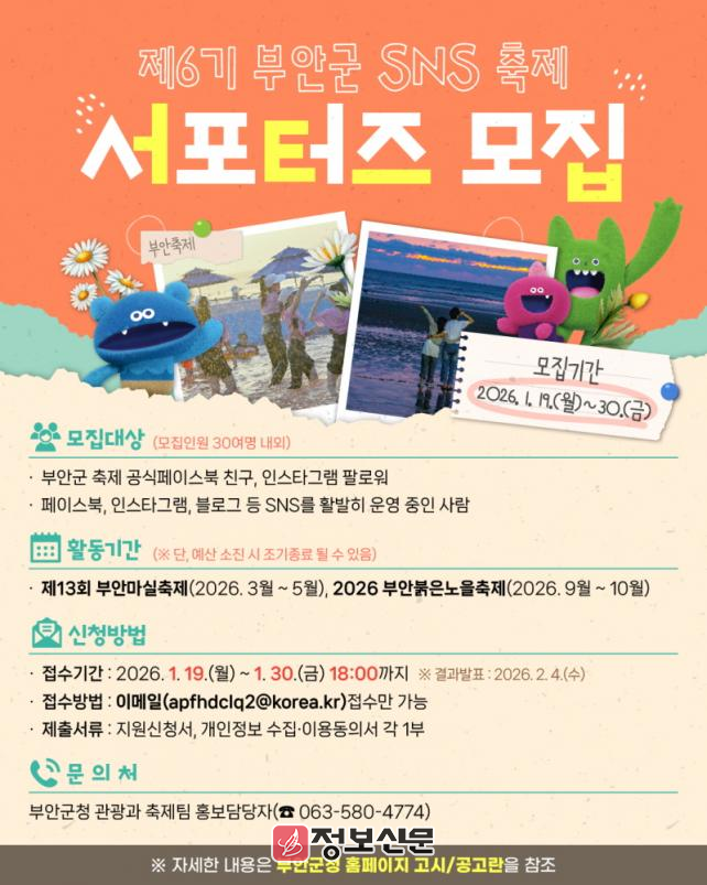 ![]() 부안군, 제6기 SNS 축제 서포터즈 모집 |