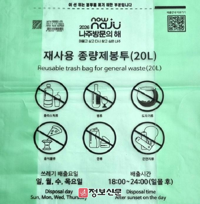 ![]() ‘2026 나주방문의 해’, 쓰레기 종량제봉투로 홍보 나선다 |