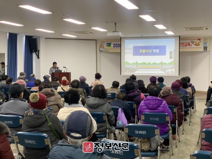 대동파출소 김상혁 소장은 노인일자리 활동 시 빈번하게 발생할 수 있는 교통사고 유형을 소개하고, 보행 시 주의 사항과 교통사고 예방을 위한 행동 요령을 중심으로 교육을 진행하며 사고 예방에 대한 경각심을 높였다.