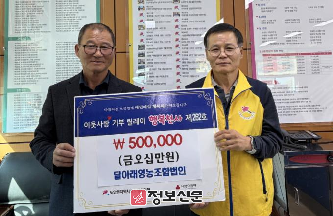 달아래영농조합법인 윤복동 대표는 “작은 정성이지만 어려운 이웃들이 조금이나마 힘을 얻고 따뜻한 일상을 이어가는 데 도움이 되길 바란다”며 “앞으로도 지역사회와 함께하는 나눔 활동을 지속적으로 실천해 나가겠다”라고 밝혔다.