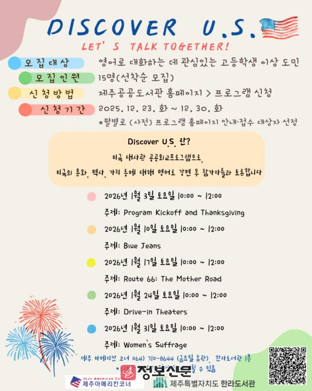 ![]() 한라도서관, 글로벌 인문 프로그램 ‘Discover U.S’ 운영 |
