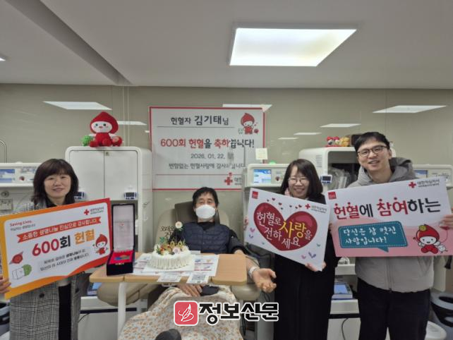 ![]() 대한적십자사 제주특별자치도혈액원, 김기태 씨 600회 헌혈 달성 42년간 이어온 생명나눔 |