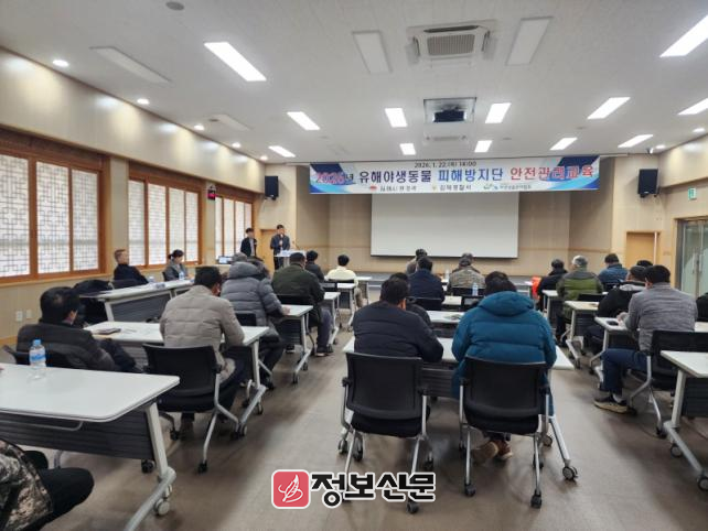이번 교육은 2026년 피해방지단으로 선발된 김제시 거주 수렵인 33명이 참석했으며, 김제경찰서와 야생생물관리협회 전북지부가 협력해 총기 취급 및 사고 예방 교육도 함께 진행됐다.
