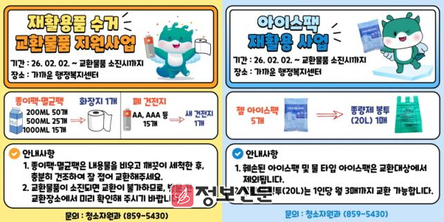 ![]() 익산시, 재활용품 수거 교환물품 지원사업 및 아이스팩 재활용 사업 추진 |