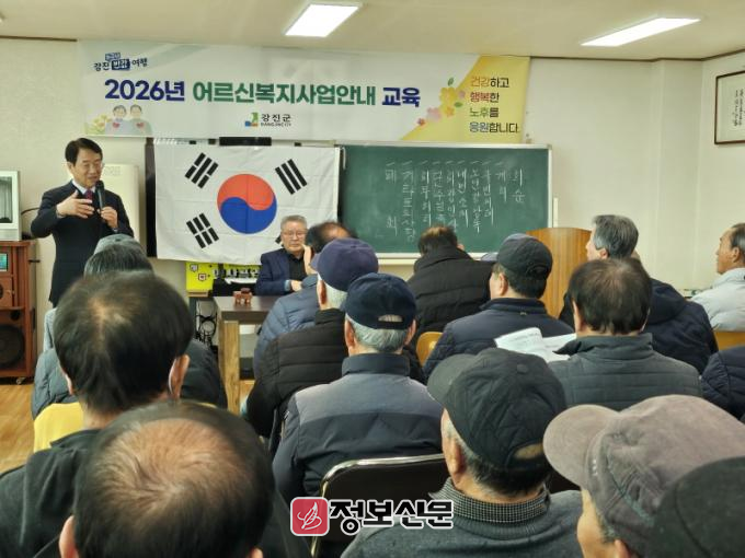 이번 교육은 2026년도 강진군 어르신 복지 주요 사업 내용을 어르신들에게 직접 안내해 복지 서비스 이용 접근성을 높이고 신규 도입 및 확대되는 복지사업을 중심으로 설명이 진행됐다.