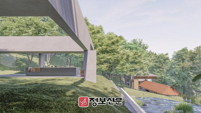 의재문화유적지의 진입 교량인 문향교는 일상에서 예술 공간으로 넘어가는 ‘전이’를 상징하는 파빌리온형 구조로 조성돼, 다리를 건너는 동안 자연을 조망하며 서서히 의재의 세계로 진입하는 경험을 제공한다. 관풍대 뒤편 숲속 쉼터와 기존 건축물·춘설헌·춘설차밭을 잇는 보행 동선·조경 계획을 통해 무등산의 지형과 식생을 최대한 살린 자연 친화적 환경도 조성할 예정이다.