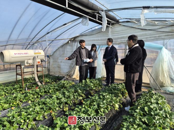 이어서 딸기를 재배하는 최한승 산업기능요원의 사업장을 방문해 복무실태를 점검하는 한편, “농업의 미래 성장산업화를 이끌어 간다는 자부심을 갖고 성실히 복무해주길 바란다”며 격려하였다.