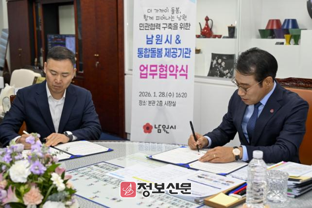 남원시는 「돌봄 통합지원에 관한 법률」 시행(2026.3.27.)에 앞서, 통합 돌봄 서비스의 질적 향상과 민관 협력 강화를 위해 28일 분야별 수행기관과 업무협약을 체결했다고 밝혔다.