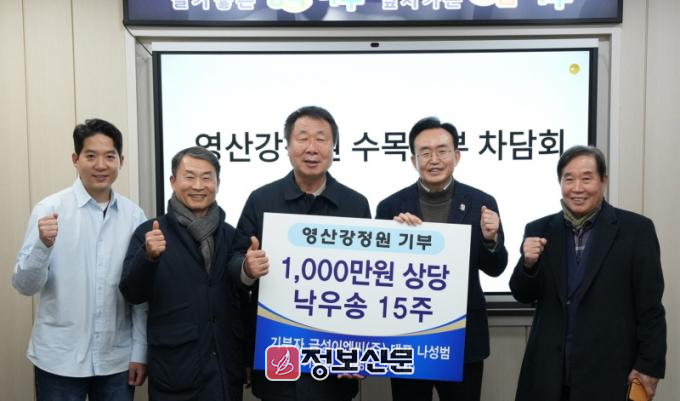 세지면이 고향인 나성범 대표는 2024년 자연석 432톤(2천만 원 상당)을 기부한 데 이어 올해에는 1천만 원 상당의 수목을 추가로 기부하며 영산강정원 조성에 꾸준한 관심과 지원을 이어오고 있다.
