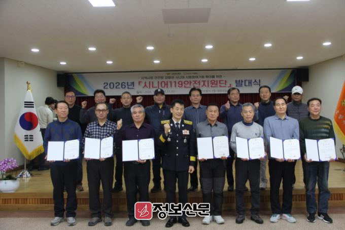 「시니어119안전지원단」은 총 15명으로 구성되어, 2026년 2월 2일부터 11월 30일까지 활동하며, 주 5회·1일 3시간(월 60시간) 근무 체계로 운영된다.