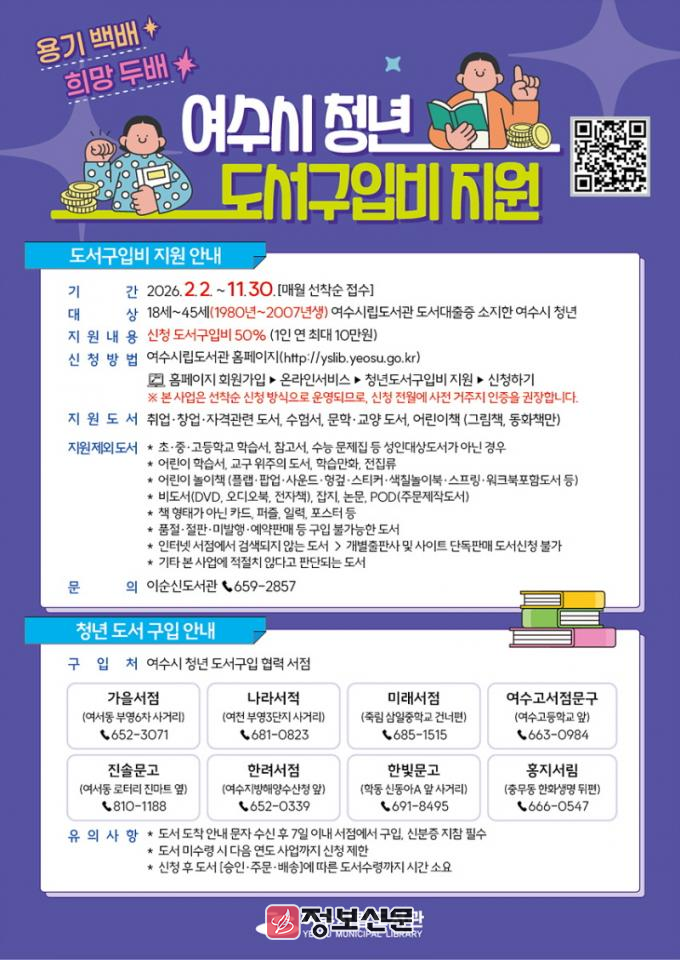 ![]() 여수시, 청년 도서구입비 지원사업 추진 |