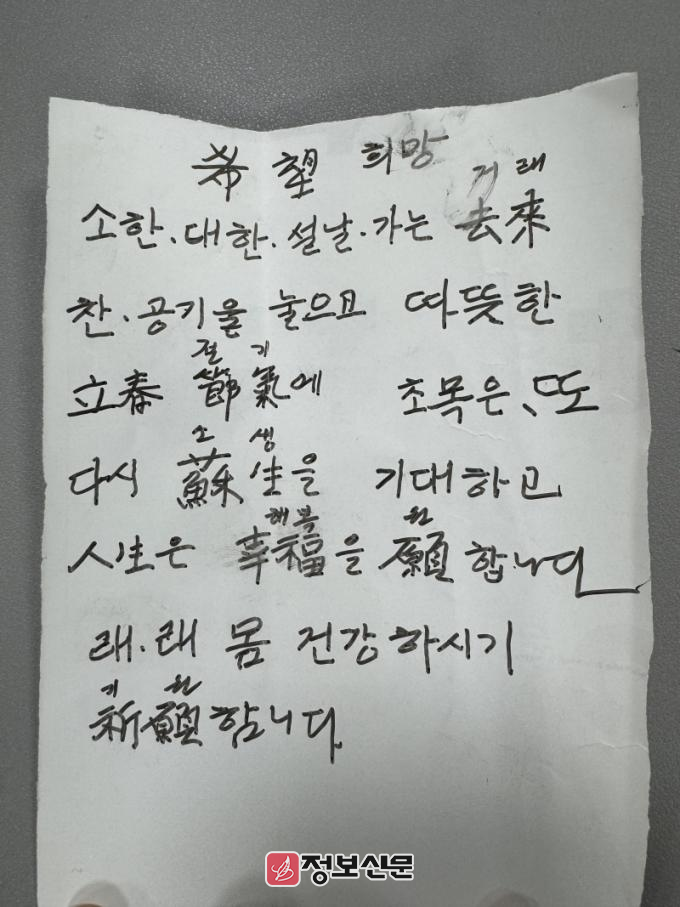 함평군 해보면은 “29일 경로식당 무료 급식 반찬 배달 과정에서 반찬통 안에 편지와 함께 소정의 현금을 발견했다”고 30일 밝혔다.