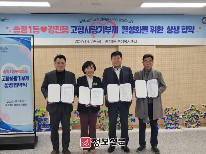 박희영 송정1동장은 “이번 협약을 통해 고향사랑기부제가 단순히 기부를 넘어 지역 간 상생 협력의 플랫폼으로 자리매김하길 바란다”라며 “고향사랑기부제에 대한 주민의 관심을 높일 수 있도록 노력하겠다”라고 전했다.