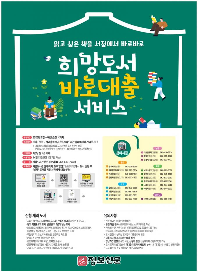 ![]() 광주광역시, 동네서점 대출.반납 희망도서 바로대출 시행 |