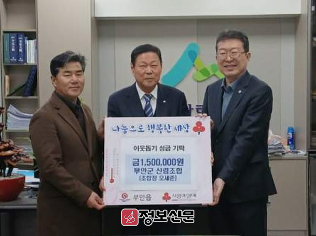 김정 부안읍 지역사회보장협의체 민간위원장은 “매년 따뜻한 나눔을 실천해 주시는 부안군산림조합에 감사드린다”며 “전달된 성금은 도움이 필요한 이웃에 소중히 잘 전달하겠다”고 고마움을 전했다.