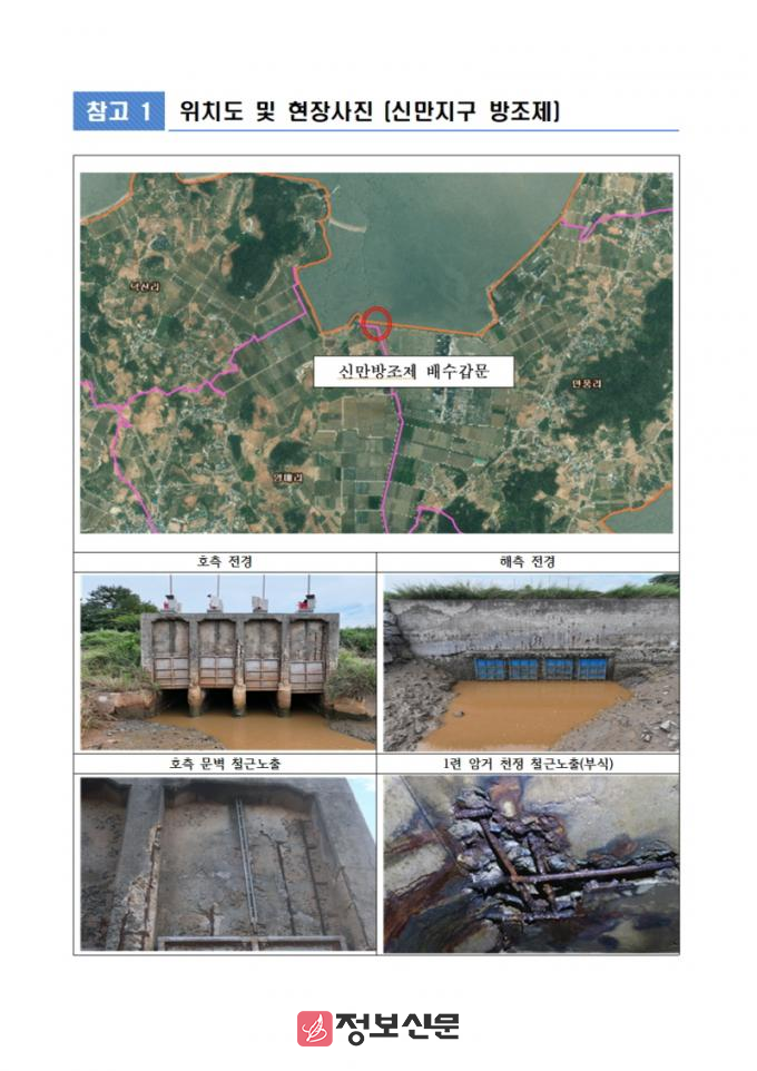 해제면 신만방조제 개보수사업은 노후 배수갑문의 성능 보완과 기능 향상을 위한 정비사업으로, 총 40억 원(국비 20억 원·도비 4억 원·군비 16억 원)이 투입된다.