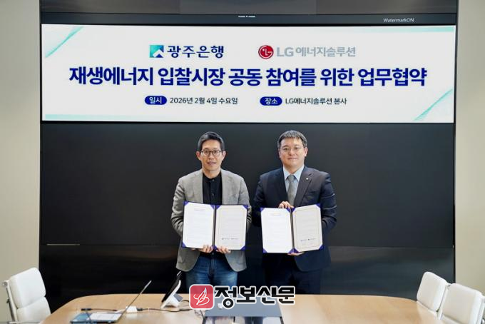 ![]() 광주은행, LG에너지솔루션과 재생에너지 입찰시장 공동참여 및 상호협력 위한 업무협약 체결 |